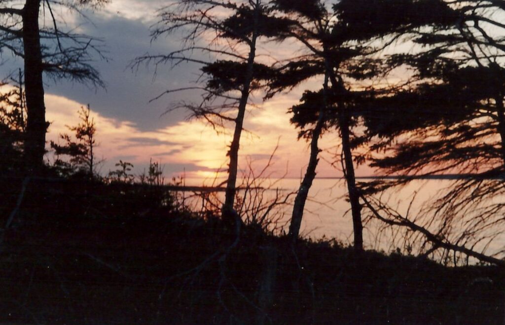 Après le souper, Roger et moi convions le reste de l’équipe à venir se chauffer au feu de camp, dans un trou. Il aura fallu chercher pas mal pour trouver un endroit adéquat. Plus près des tentes, la végétation est trop sèche. Sur la plage, il vente énormément. Un trou probablement creusé mécaniquement nous coupe un peu du vent. Cependant, la fumée tourbillonne. Il n’est pas facile de rester près du feu sans pleurer… à cause de la fumée. Nous profitons de ce temps pour nous réchauffer et échanger sur notre vécu de groupe depuis le début du voyage.