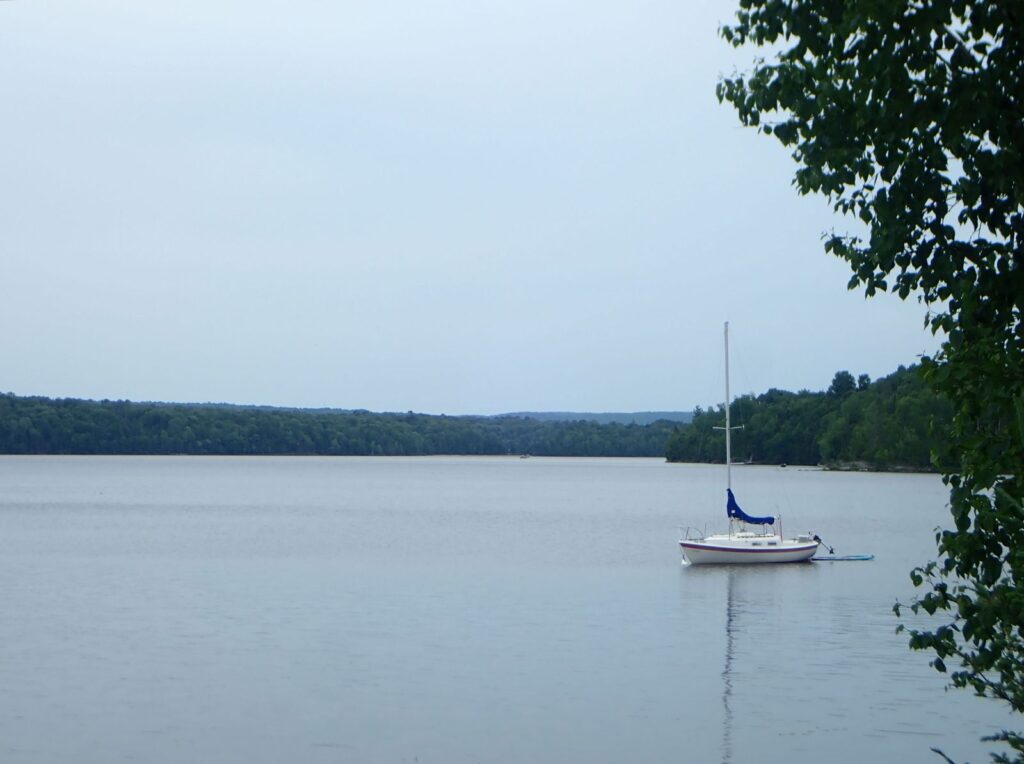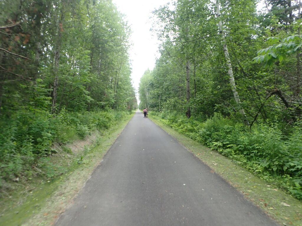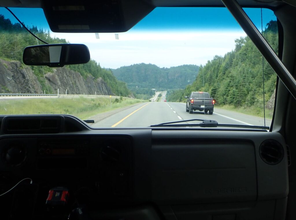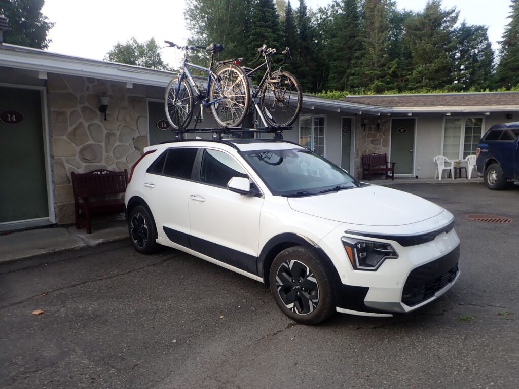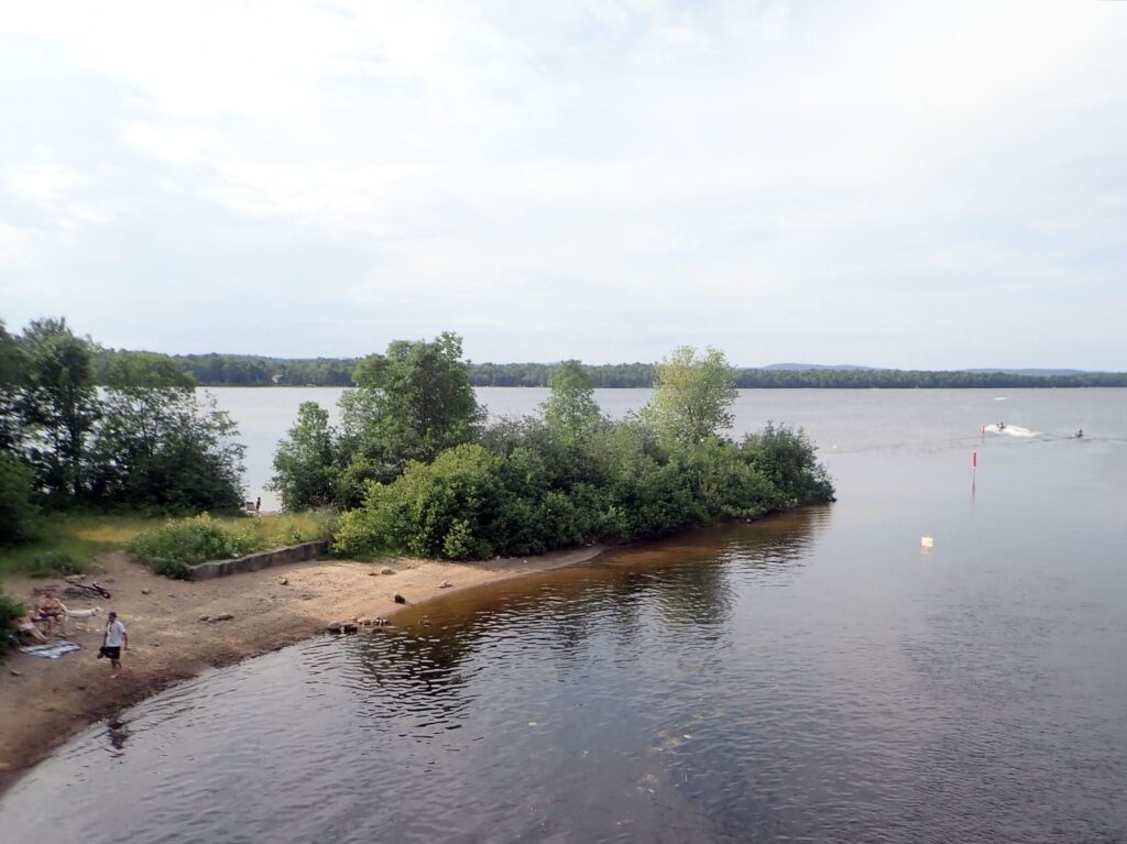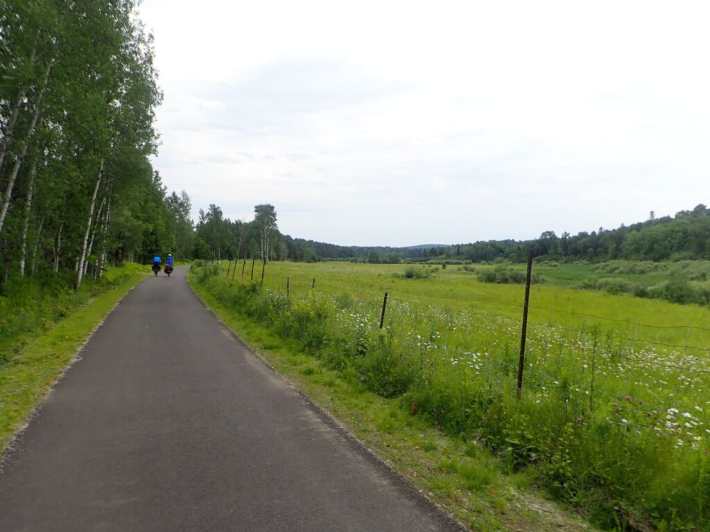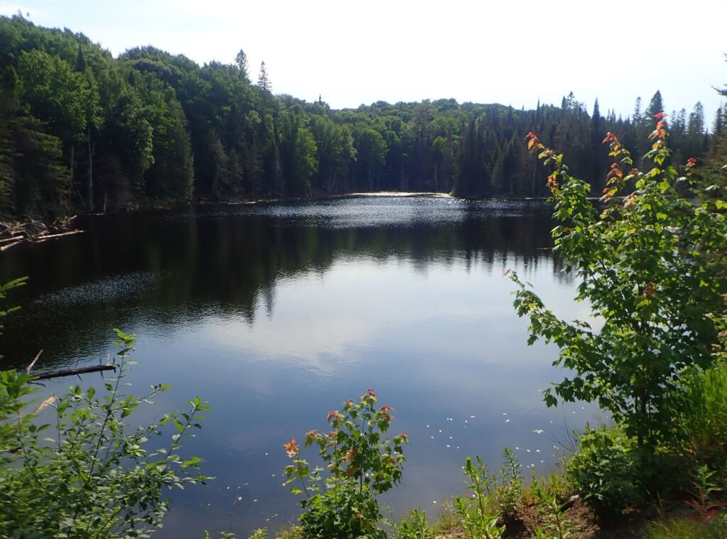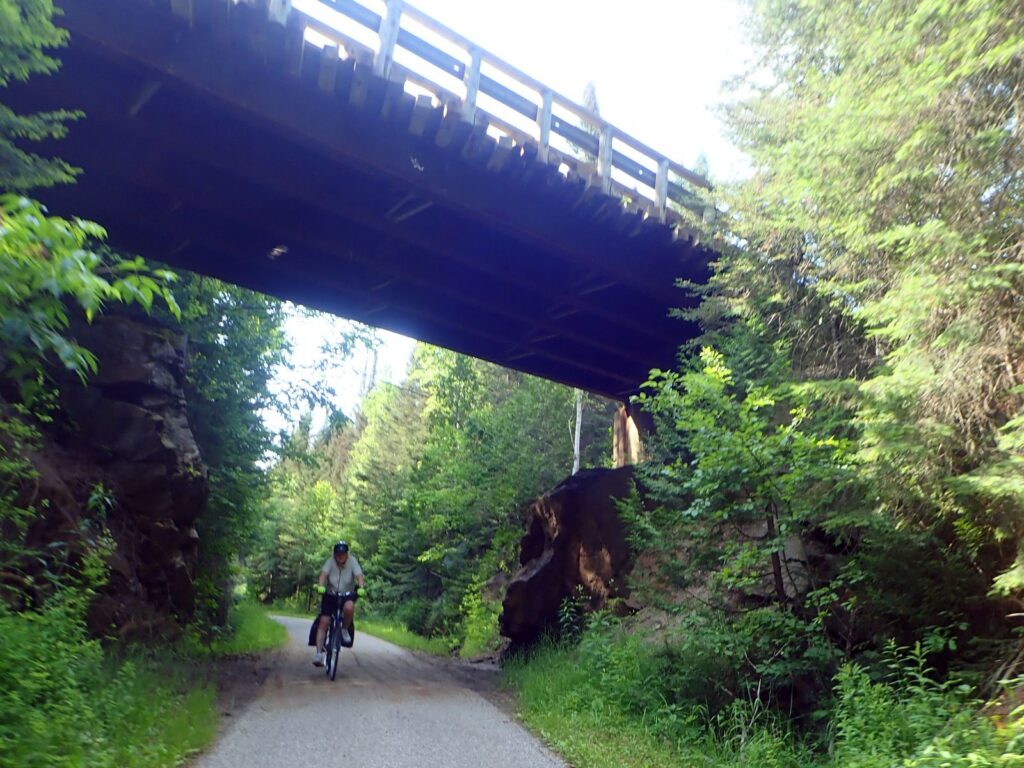 Nuit calme et confortable, grâce aux fenêtres bien ouvertes de notre chambre de motel juste au nord de Saint-Jérôme. Mais le réveil sonne tôt : nous sommes debout à 6 h et à la gare à 7 h. Il y a deux petits autobus avec chacun une remorque pour les vélos, et les cyclistes qui arrivent tranquillement. À 8 h 15, les deux véhicules sont remplis, nous prenons la route. En chemin, nous arrêtons à Labelle et à Lac Saguay, nous arrivons à Mont-Laurier vers 11 h 15.