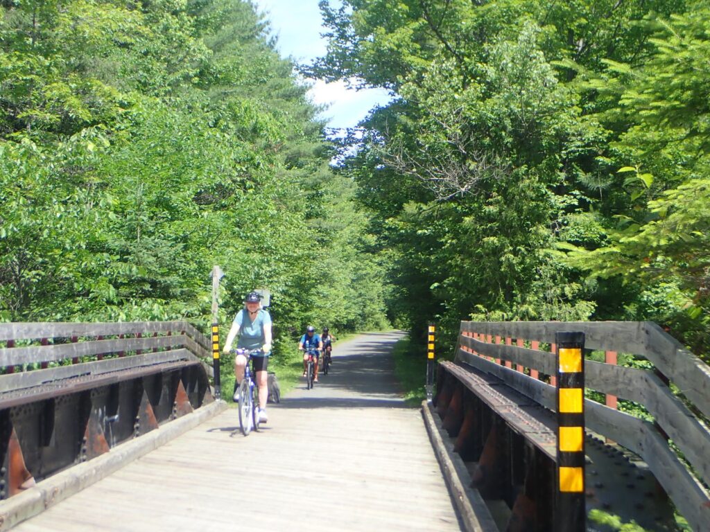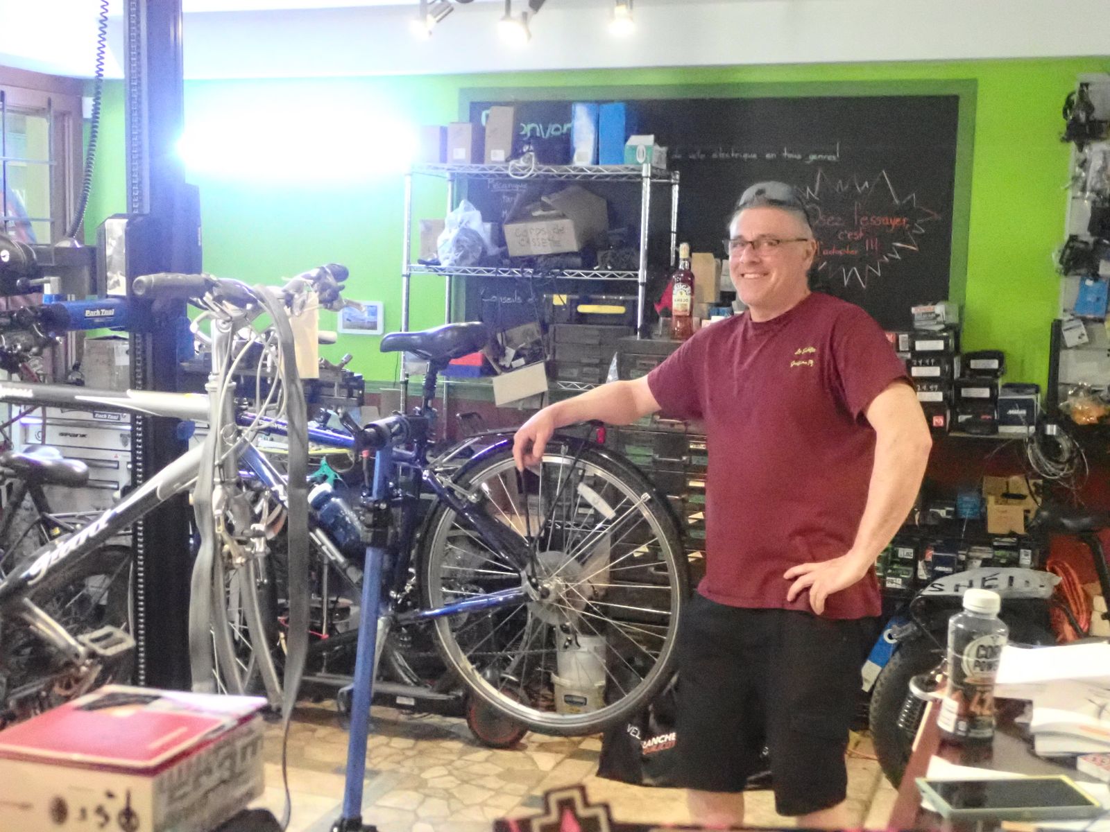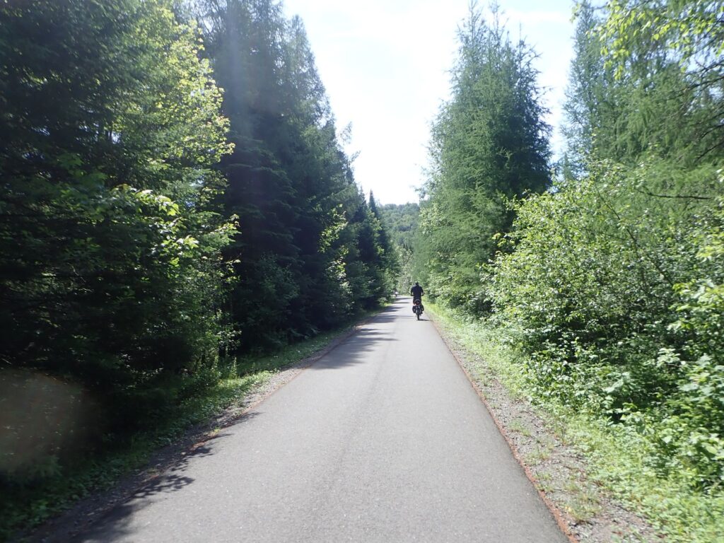 Je prends donc tous les bagages et nous longeons prudemment la magnifique Rivière du Nord sur environ 6 km avant de rejoindre une boutique de vélo à Val-David. Le technicien fait un excellent travail, et bientôt nous reprenons la piste en toute confiance.