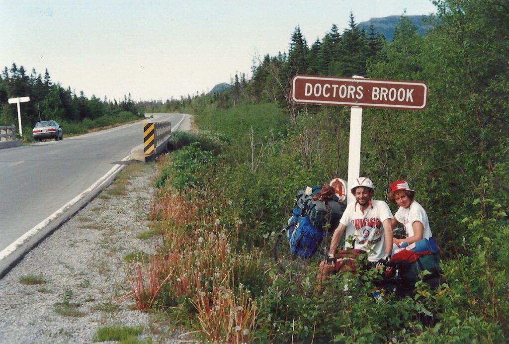 Enfin, Terre-Neuve ! Quelques derniers ajustements, et nous voilà partis. Lyette finit par retrouver confiance en son vélo et en elle. Le convoi chambranlant prend la route. Nous laissons Jean au coin de la route.