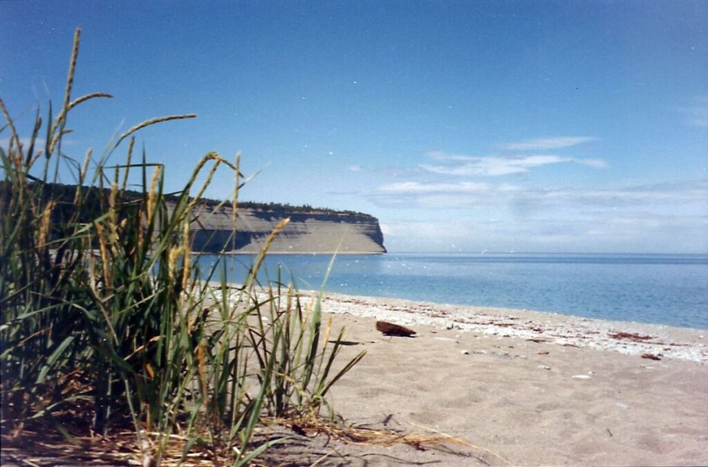 Nous entrons au village avec une certaine nostalgie, déjà. Voici l’asphalte, la mer, le quai… et l’Écomusée où nous retrouvons avec grande joie notre ami Valère qui nous attendait. Notre visite est longue, car nous sommes plutôt lents. Le musée n’est pas grand, mais est très intéressant, on ose prendre le temps d’examiner les objets de la vie quotidienne, les fossiles, l’herbier, les photos, de regarder un vidéo sur Anticosti et le rêve de Menier, et bien sûr de rire avec Valère, Carole (voir mardi 3) et Steve, en racontant aventures et mésaventures. Valère nous offre de prendre une douche, il y en a quatre à l’Écomusée (centre communautaire). Ça fait un bien énorme, mais comme nous sommes sur Anticosti, l’eau reste froide. Brrr ! Mais finalement on s’habitue. .