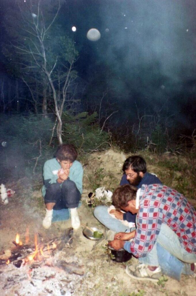C’est Éric (voir mardi 3) qui nous voit débarquer sans prévenir tous les cinq dans sa roulotte pour jaser de tout et de rien, mais surtout de la vie de l’île, de ses coutumes, gens et lois bien particuliers. Trois chatons, nés le jour même, ont droit à quelques caresses avant que nous nous dirigions vers le quai avec Valère et Éric. Rires et émotions, goût de rester, comme si le rêve voulait continuer. Les préparatifs permettent une pesée des vélos chargés1 : Jean-Pierre, 65 livres ; Jacinthe et Roger, 70 livres chacun ; Réal, 75 livres, sans toute la nourriture… Ouf ! Heureusement, Éric nous aide à les embarquer, il est fort et gentil. Nous restons sur le quai jusqu’à la dernière minute, avec nos deux amis, la pleine lune et le vent. Instants précieux. Sur le bateau qui tangue de plus en plus sur une mer agitée, nous jasons longuement, avant de nous écrouler sur des lits improvisés. Le bateau et nos cœurs ont des mouvements étranges, mais la fatigue fait son œuvre. Adieu, Anticosti. Ou plutôt, au revoir !