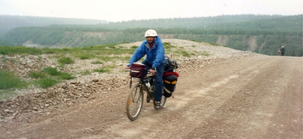 Nous désirons revoir nos amis de Port-Menier, et c’est pourquoi nous décidons de prendre le premier camion pour le village. De toute façon, le soleil brûlant, les souvenirs des côtes vues en camion la semaine dernière et surtout un magnifique et puissant… vent de face, nous stimulent à ne pas trop pédaler. La décision de prendre le camion étant prise, il ne restait plus qu’à pédaler jusqu’à ce que… Côte après côte, avec vent et soleil, nous pédalons sans qu’arrive le fameux camion. Selon la carte, nous devons monter un peu, puis redescendre jusqu’au village.